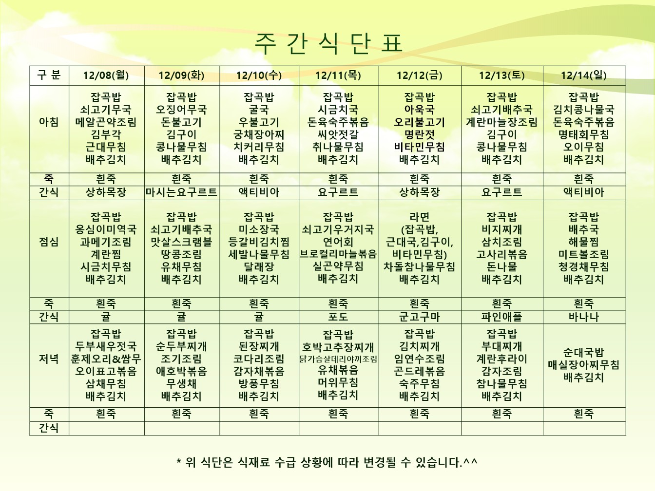 74건 1월 셋째주 2026-01-16 26년 1월 둘째주 2026-01-09 26년 1월 첫째주 2026-01-02 25년12월29~26년 1월 4일 2025-12-29 12월 넷째주 2025-12-22 12월셋째주 2025-12-15 12월 둘째주 2025-12-08 12월 첫째주 2025-12-03 1 2 3 4 5 6 7 8 9 10 제목 내용