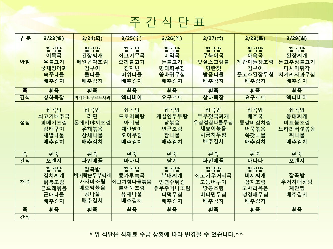식단표